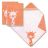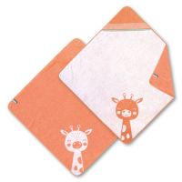 Mit dem Dyckhoff Kinderkapuzentuch Giraffe sind Sie perfekt ausgestattet. Dieses große und quadratische Handtuch mit seinen 100x100 cm können Sie besonders lange für Ihr Baby oder Kind verwenden. Denn auch wenn die lieben Kleinen schon etwas älter sind, werden die Kinderkapuzentücher noch gerne verwendet. Ob zum draufliegen am See oder damit herumlaufen oder einwickeln, die Dyckhoff Kinderkapuzentücher Giraffe erfreuen sich großer Beliebtheit. Aber nicht nur die Größe ist ausschlaggebend, sondern auch das Design und die Qualität. So lächelt verschmitzt eine niedliche Giraffe Sie an, welche das Kapuzentuch ziert. Das Dyckhoff Kindertuch ist aus einer besonders schweren Qualität gewebt worden. So besitzt es hochwertige 500g/m² und ist aus reiner Baumwolle gefertigt. Baumwolle ist bekannt, dass sie die Feuchtigkeit sehr gut aufnimmt und zugleich angenehm weich auf der Haut ist. Gerade nach dem Baden können Sie Ihr Goldstück damit einwickeln. Dyckhoff produziert das Kinderkapuzentuch Giraffe in Deutschland. Das Motiv Giraffe ist eine sogenannte Vollbunte Einwebung. Dadurch wird das Design der Giraffe auf der Rückseite, im Gegensatz zur Vorderseite, dann orange und das Tuch weiß dargestellt. Dyckhoff legt großen Wert auf kindliche Motive und ausgesuchte und zertifizierte Qualität. Das Kinderkapuzentuch Giraffe verfügt über das Öko-Tex Standard 100 Zertifikat und ist somit auf Schadstoffe geprüft worden. Zu dem Kapuzentuch für Kinder mit Motiv Giraffe gibt es passend das Kinderhandtuch und den Kinderwaschlappen in selber Qualität und Farbe dazu.