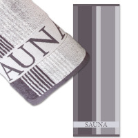 | Extras | mit Bordüreneinwebung "Sauna" und Streifen im Tuch |