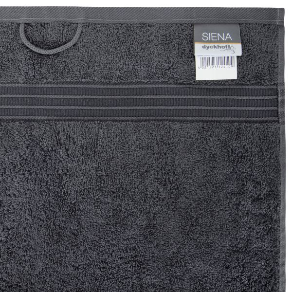Das Dyckhoff Seiftuch Siena vereint zeitlose Eleganz und moderne Akzente auf beeindruckende Weise. Die trendigen Farben und die exquisite Bordüre, die mit hochwertigem Viskose-Garn veredelt ist, verleihen diesem flauschig-weichen Seiftuch einen ganz besonderen Charme. Siena besteht aus Walkfrottier, das höchsten Ansprüchen gerecht wird und aus 100% reiner Baumwolle gefertigt ist. Damit überzeugt es nicht nur durch seine Qualität, sondern auch durch ein hervorragendes Preis-Leistungs-Verhältnis. Das Dyckhoff Seiftuch Siena hat ein Flächengewicht von 500 g/m². So können Sie sich auf ein luxuriöses und gleichzeitig strapazierfähiges Produkt freuen. Die Qualität Siena ist äußerst pflegeleicht und kann bei 60 Grad gewaschen werden. Zudem ist sie trocknergeeignet, sodass Sie sie schnell wieder nutzen können. Durch die Verwendung von 100% Baumwolle ist Siena besonders hautfreundlich und angenehm auf der Haut. In verschiedenen Farben erhältlich, finden Sie in unserem Sortiment genau die richtige Auswahl für Ihr Badezimmer und Gästetoilette. So schaffen Sie eine harmonische Atmosphäre und verleihen Ihrem Bad einen Hauch von Luxus.