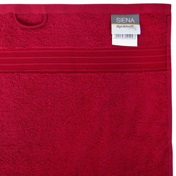Das Dyckhoff Seiftuch Siena vereint zeitlose Eleganz und moderne Akzente auf beeindruckende Weise. Die trendigen Farben und die exquisite Bordüre, die mit hochwertigem Viskose-Garn veredelt ist, verleihen diesem flauschig-weichen Seiftuch einen ganz besonderen Charme. Siena besteht aus Walkfrottier, das höchsten Ansprüchen gerecht wird und aus 100% reiner Baumwolle gefertigt ist. Damit überzeugt es nicht nur durch seine Qualität, sondern auch durch ein hervorragendes Preis-Leistungs-Verhältnis. Das Dyckhoff Seiftuch Siena hat ein Flächengewicht von 500 g/m². So können Sie sich auf ein luxuriöses und gleichzeitig strapazierfähiges Produkt freuen. Die Qualität Siena ist äußerst pflegeleicht und kann bei 60 Grad gewaschen werden. Zudem ist sie trocknergeeignet, sodass Sie sie schnell wieder nutzen können. Durch die Verwendung von 100% Baumwolle ist Siena besonders hautfreundlich und angenehm auf der Haut. In verschiedenen Farben erhältlich, finden Sie in unserem Sortiment genau die richtige Auswahl für Ihr Badezimmer und Gästetoilette. So schaffen Sie eine harmonische Atmosphäre und verleihen Ihrem Bad einen Hauch von Luxus.