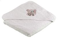 Mit dem Kinderkapuzentuch Elefant macht das Baden richtig Spaß. Hierbei handelt es sich um ein quadratisches Handtuch von 100x100 cm, mit einer Kapuze in der Ecke. Diese Kapuzenhandtücher werden gerne für Babys und Kleinkinder verwendet, um sie nach dem Baden kuschelig warm und weich einzupacken. Aber auch größere Kinder wollen die Kapuzentücher mit der Stickerei süßer Elefant gar nicht mehr hergeben.