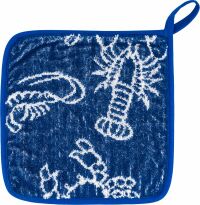 In der Küche kommen Topflappen immer dann zum Einsatz, wenn heiße Gegenstände, wie zum Beispiel Reinen, Töpfe oder Pfannen angefasst werden müssen. Damit nichts passiert und Sie sich die Finger nicht verbrennen, schützen die praktischen und bunten Kracht Topflappen dank ihrer Größe von 22x22 cm besonders gut. Die quadratischen Helfer sind aus dicker Baumwolle gefertigt und mit ansprechenden Hummer, Garnelen und Krabben Motiv in Form von einer Einwebung veredelt worden. Sie können ohne Weiteres bei 60° C in der Waschmaschine gewaschen und im Trockner bei niedriger Temperatur getrocknet werden. Kracht Topflappen sind übrigens hervorragend als kleine Aufmerksamkeit oder Geschenk besonders gut geeignet.