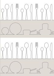 | Extras | Halbleinenqualität gedrucktes Muster von Besteck (Löffel, Gabel, Messer, Tassen, Teller) sehr gute Trockeneigenschaften |