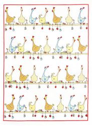 | Extras | Halbleinenqualität mit witzigem Druck Hühner auf der Stange |