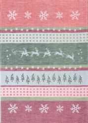 | Extras | mit hochwertiger, weihnachtlicher Einwebung "Springende Hirsche" mit grünem Streifen in der Mitte |