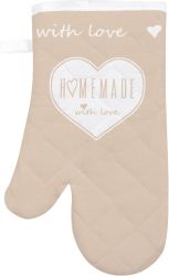 | Extras | mit Druck auf der Vorderseite "Homemade" Rückseite einfarbig in beige mit weicher Innenseite und Aufhängerschlaufe |