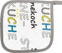 In der Küche kommen Topflappen immer dann zum Einsatz, wenn heiße Gegenstände, wie zum Beispiel Reinen, Töpfe oder Pfannen angefasst werden müssen. Damit nichts passiert und Sie sich die Finger nicht verbrennen, schützen die praktischen und bunten Kracht Topflappen dank ihrer Größe von 22x22 cm besonders gut. Die quadratischen Helfer sind aus dicker Baumwolle gefertigt und mit ansprechenden und witzigen Motiven in Form von einem hochwertigen Druck veredelt worden. Sie können ohne Weiteres bei 60° C in der Waschmaschine gewaschen und im Trockner bei niedriger Temperatur getrocknet werden. Kracht Topflappen sind übrigens hervorragend als kleine Aufmerksamkeit oder Geschenk besonders gut geeignet.