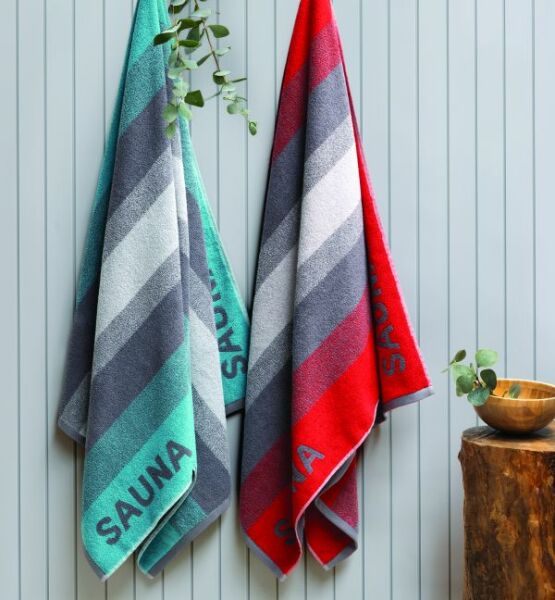 Mit Jacquard-Einwebung des Schriftzuges Sauna,