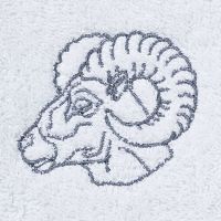 | Extras | mit deutscher Stickerei "Widder" in silber-grau |