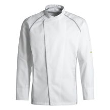 Damit die Kochjacken all diesen Anforderungen gerecht werden können, müssen sie vor allem funktional und äußerst strapazierfähig sein. Unsere Kochjacken sind robust und versprechen zuverlässiges Strahlen auch nach vielen Waschgängen. Sie können selbstverständlich von Großwäschereien problemlos gewaschen werden und versprechen so hygienisches Weiß über viele Jahre. Wir führen unterschiedliche Modelle, so dass Sie sicher etwas finden, das Ihrem Geschmack entspricht. Unsere klassische weiße Kochjacke mit schwarzer Paspelierung und Kugelknöpfen steht für funktionale Eleganz. Wenn Sie auf die Knöpfe lieber verzichten wollen, empfehlen wir Ihnen das Modell mit versteckten Druckknöpfen und schickem Stehkragen, mit dem auch Ihre Servicemitarbeiter und Mitarbeiterinnen eine gute Figur machen. Für die hektischen und hitzigen Momente in der Küche sind die Kurzarmjacken in edlem Schwarz interessant. Dieses Modell ist auch in der Langarmvariante erhältlich.